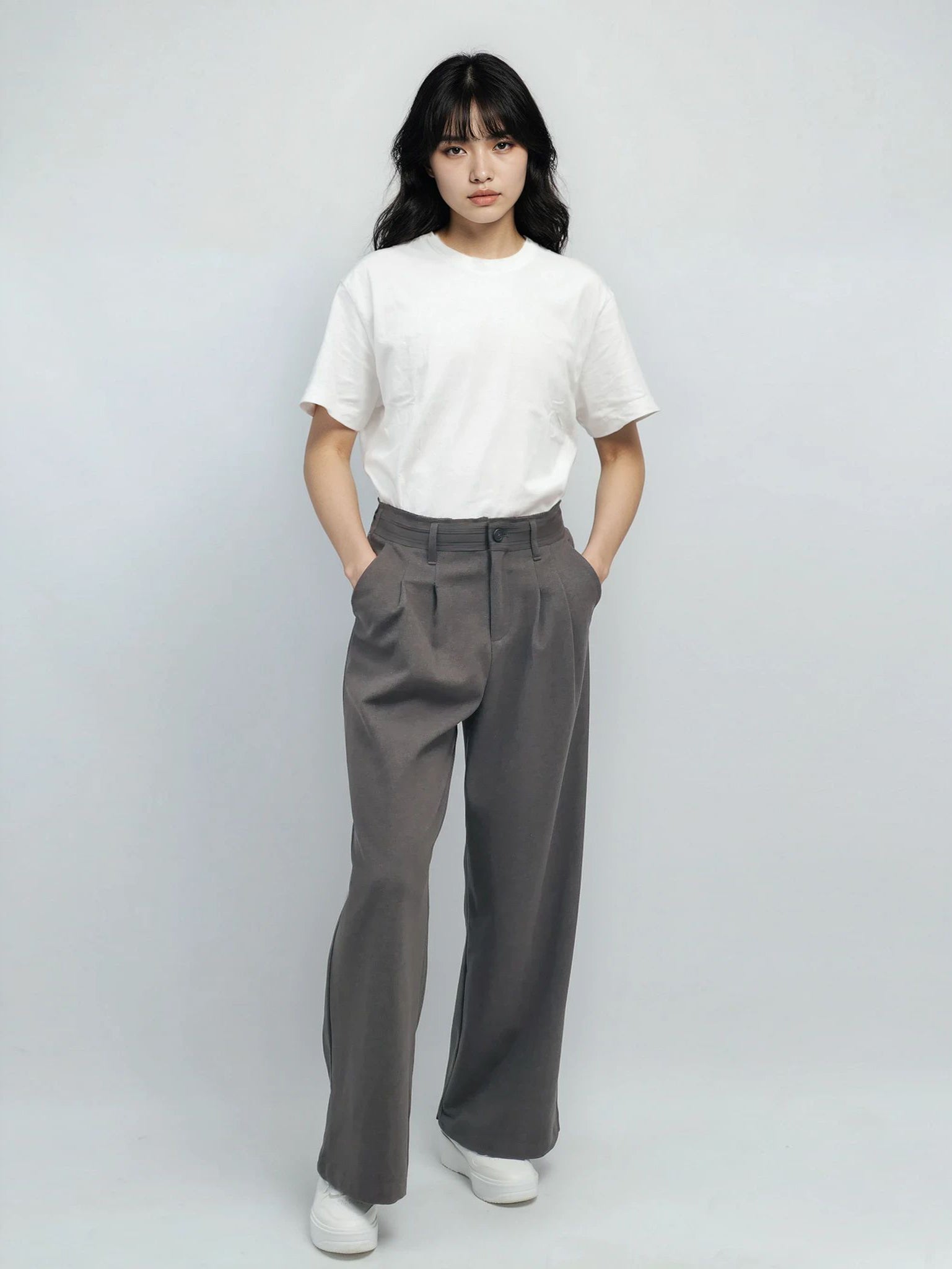 Cut from a soft polyester-viscose blend, the trousers drape with ease and comfort, balancing structure with fluidity. Styled with a simple tee, they project effortless minimalism, while paired with a sharp blazer or a fine knit, they elevate into a polished ensemble. A wardrobe essential designed for timeless adaptability.